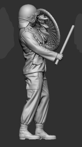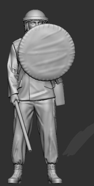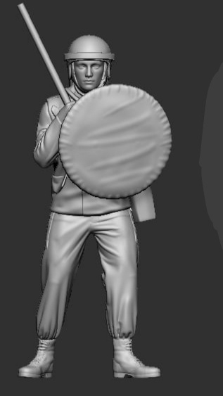 F-AME03 ME'er met het schild hoog.Set: ME'er met schild hoog KroningsRellen. SMM F-AME03